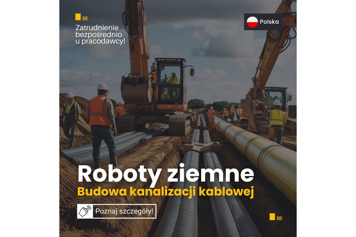 Roboty ziemne/ Budowa kanalizacji kablowej– Polska, aktualnie okolice Dolnego Śląska i Zielonej Góry – praca od zaraz.