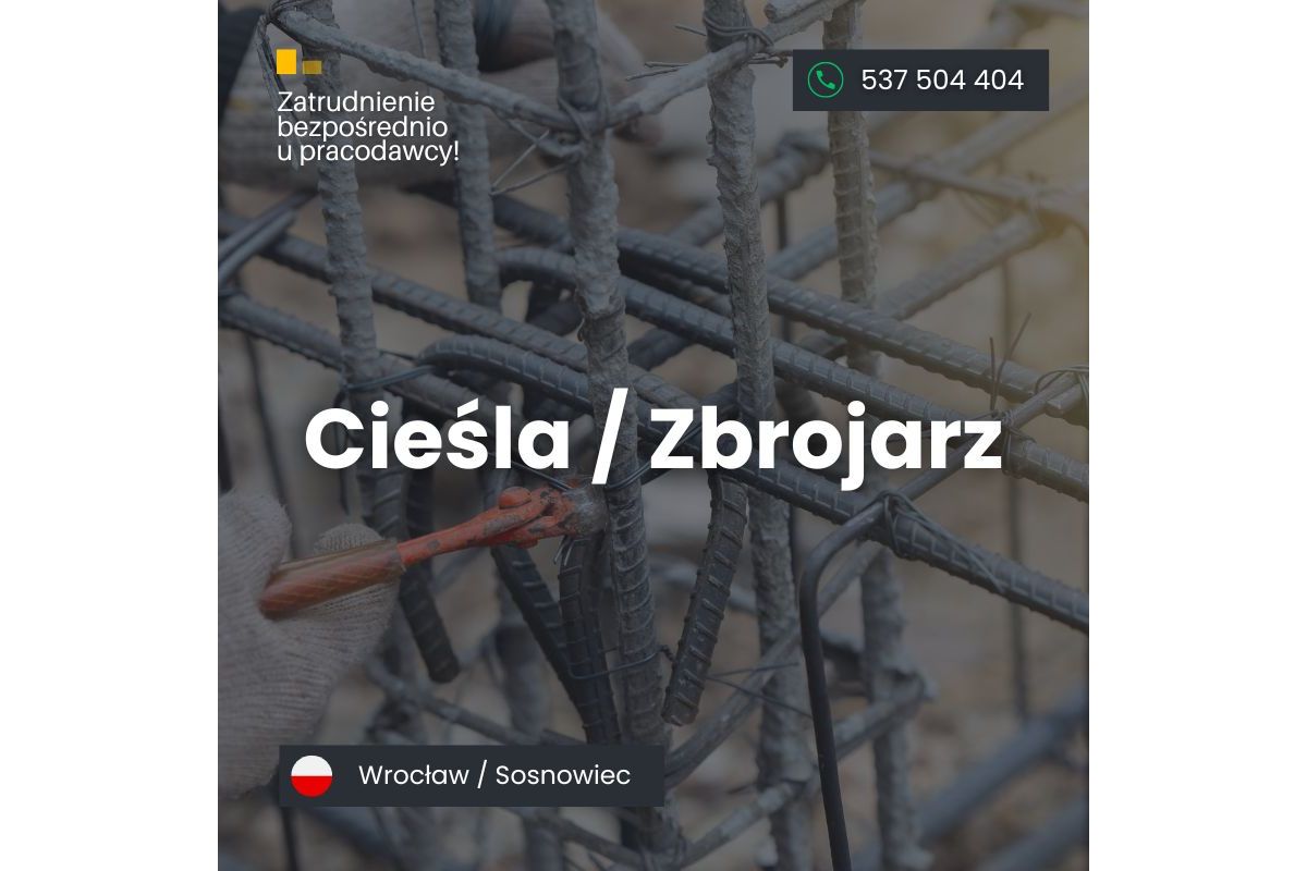 Dynamicznie rozwijająca się firma budowlana z siedzibą w Krakowie poszukuje osób na stanowisko Cieśla/Zbrojarz. Praca odbywa się w Wrocławiu i Sosnowcu.